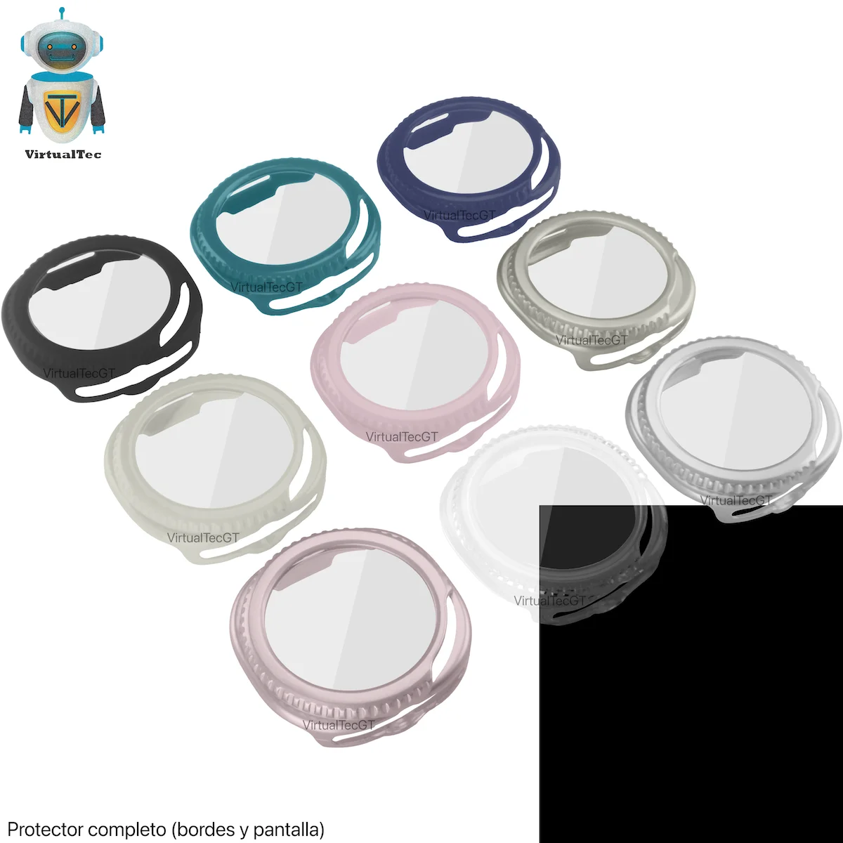 Protector completo, cubre bordes y pantalla de reloj, de TPU con vidrio templado en pantalla. Tiene un espacio para poder girar bisel giratorio físico.