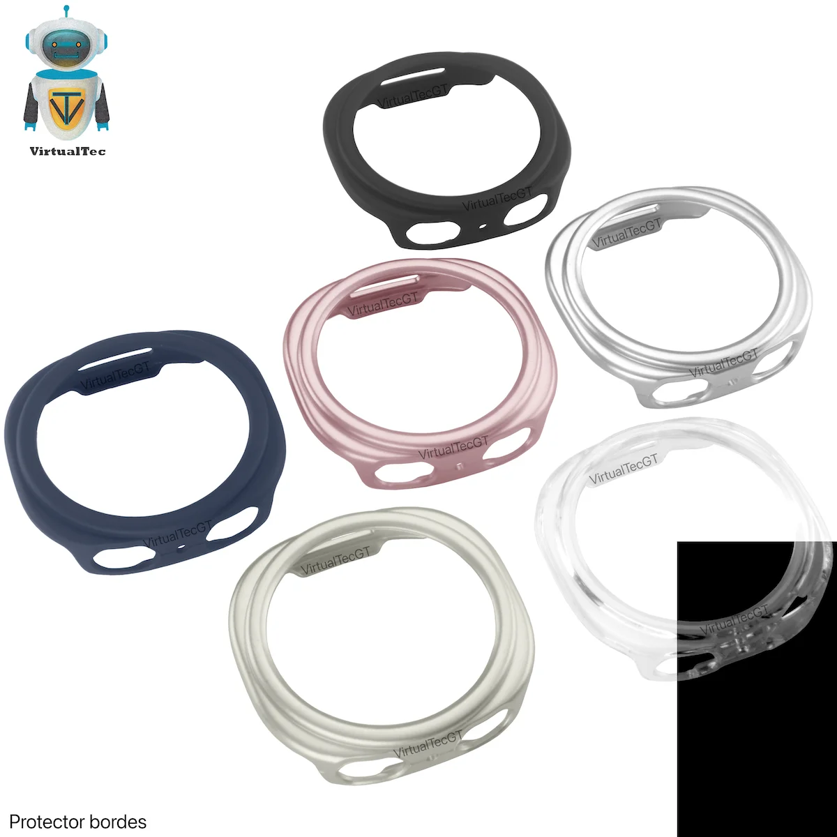 Protector de bordes anti golpes y caídas. Puede complementarse con protector de pantalla individual. De TPU rígido.