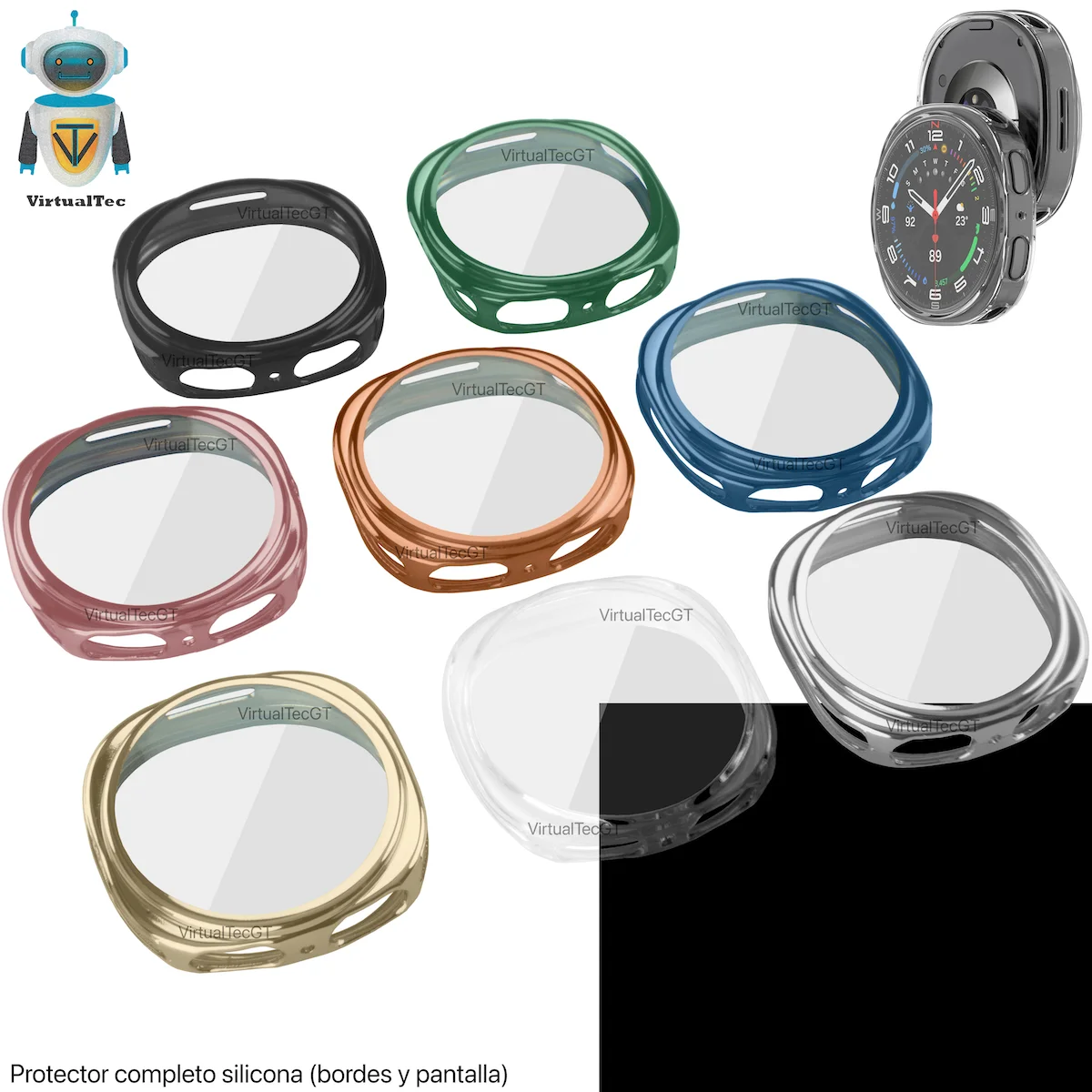 Protector completo de silicona, cubre bordes y pantalla de reloj. Tanto bordes y pantalla son de silicona. Excelente protección anti golpes y caídas.